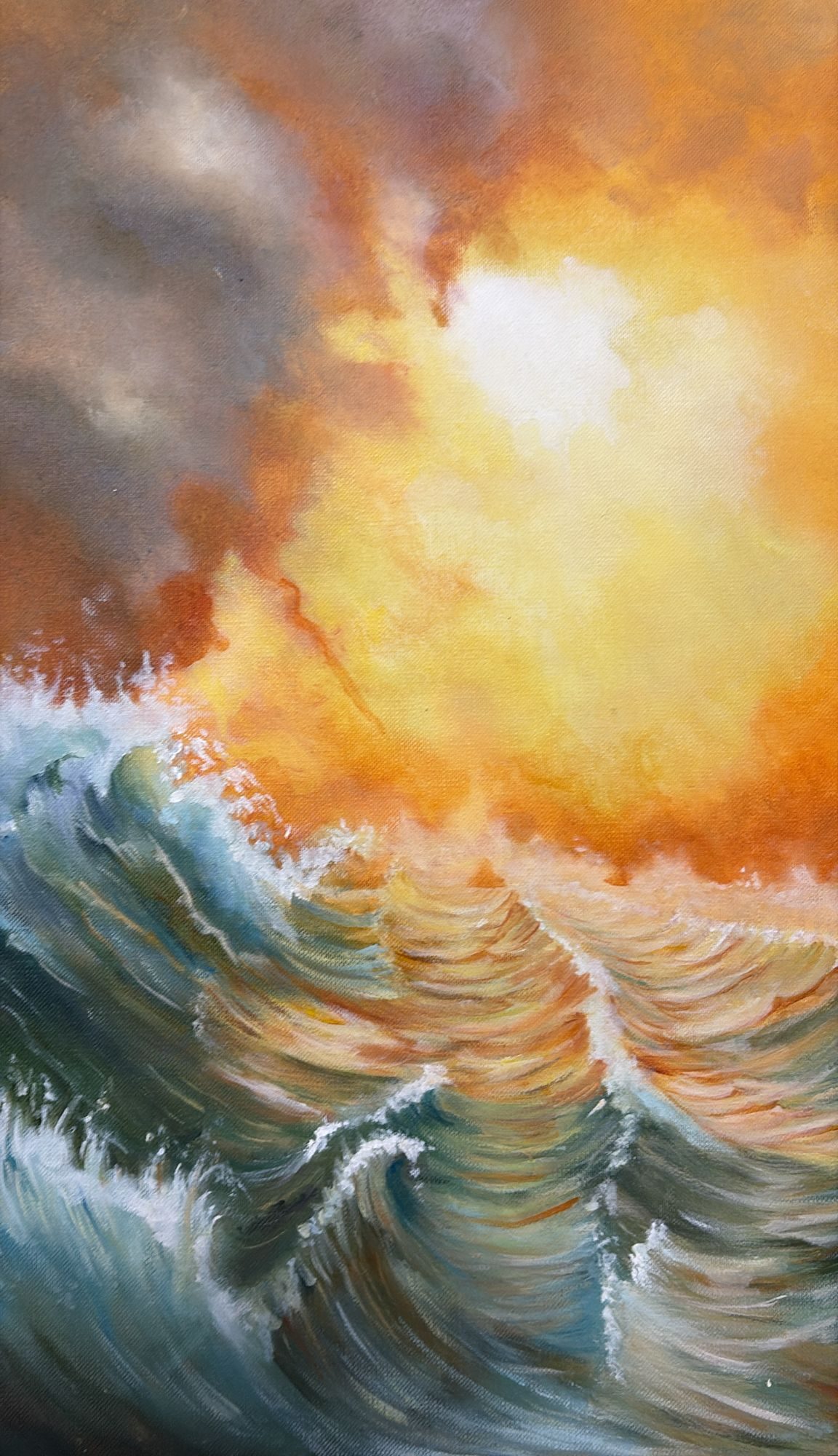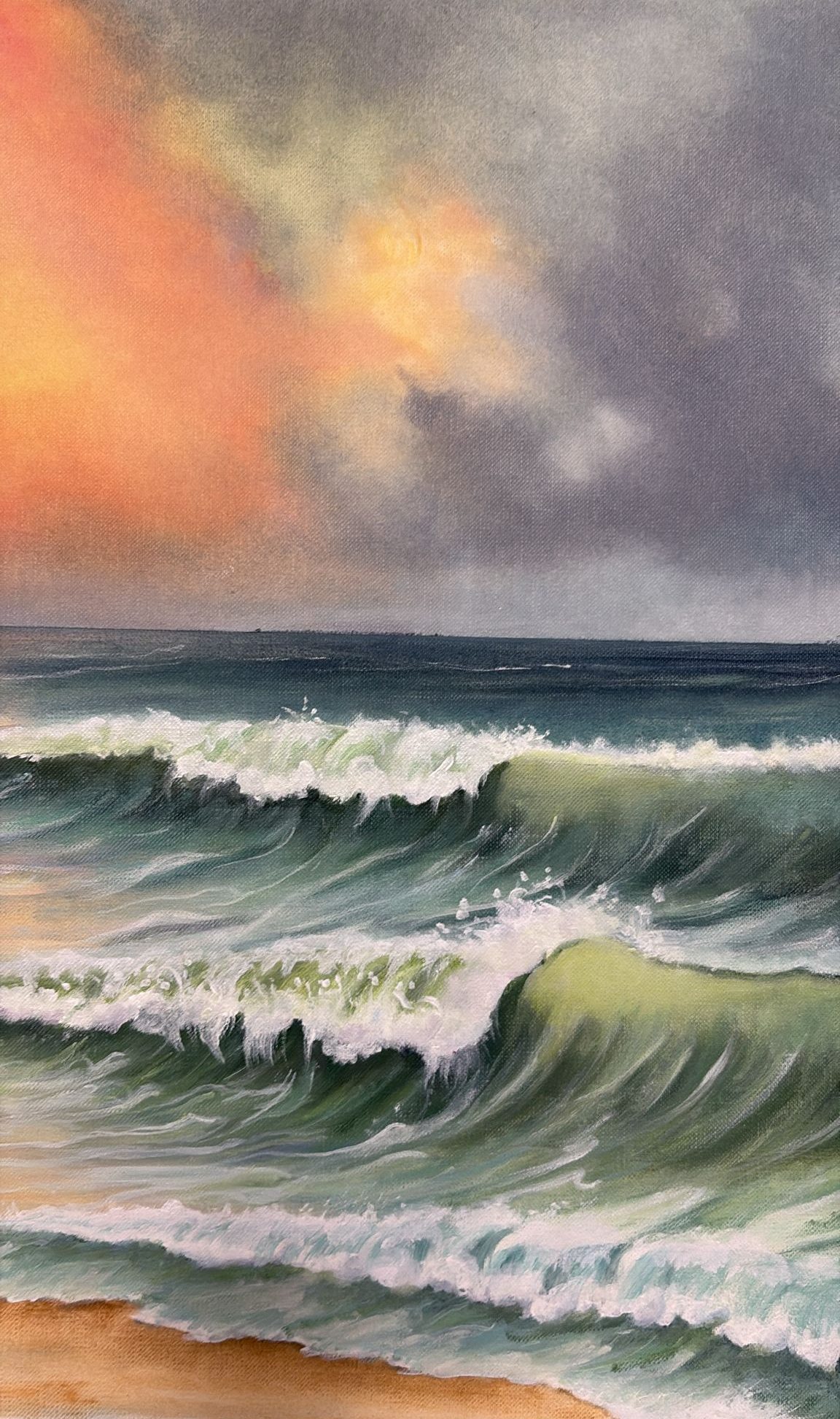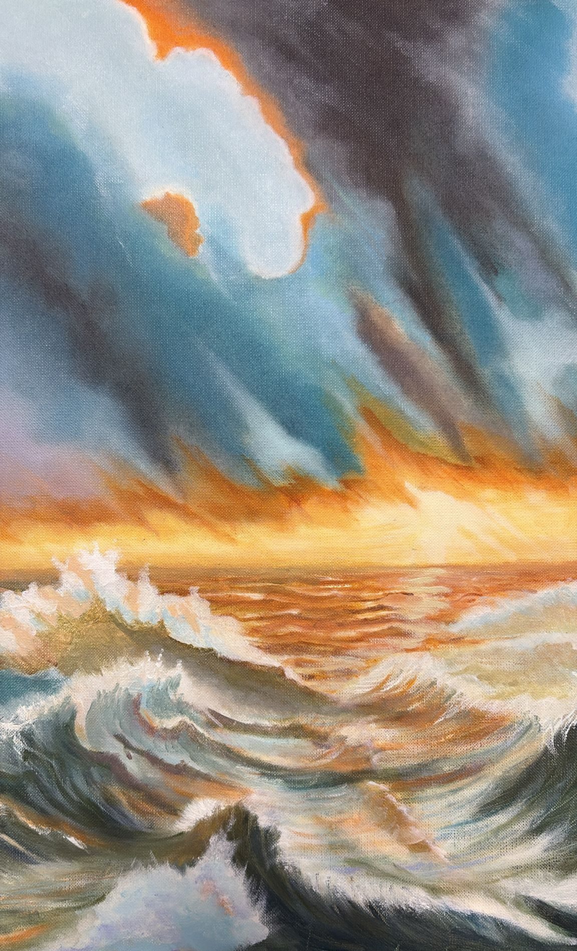 “La verdadera maravilla en la obra de Luis Carlos Rincón Ramírez se revela cuando su mirada se dirige al horizonte. En sus mares, Luisca logra lo que pocos: capturar el movimiento eterno del agua, la transparencia de las olas y la fuerza de un océano que parece respirar bajo el lienzo. Sus pinceladas nos permiten sentir el salitre y la humedad, convirtiendo la superficie del cuadro en una experiencia sensorial completa.